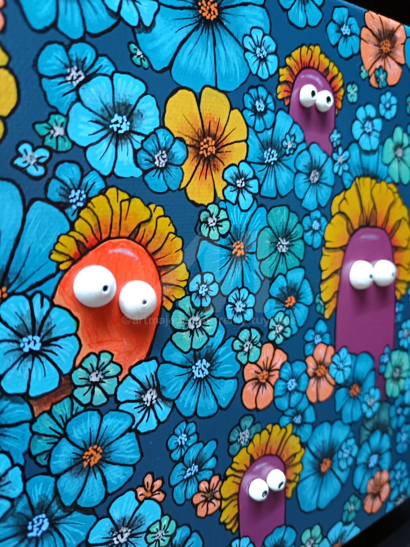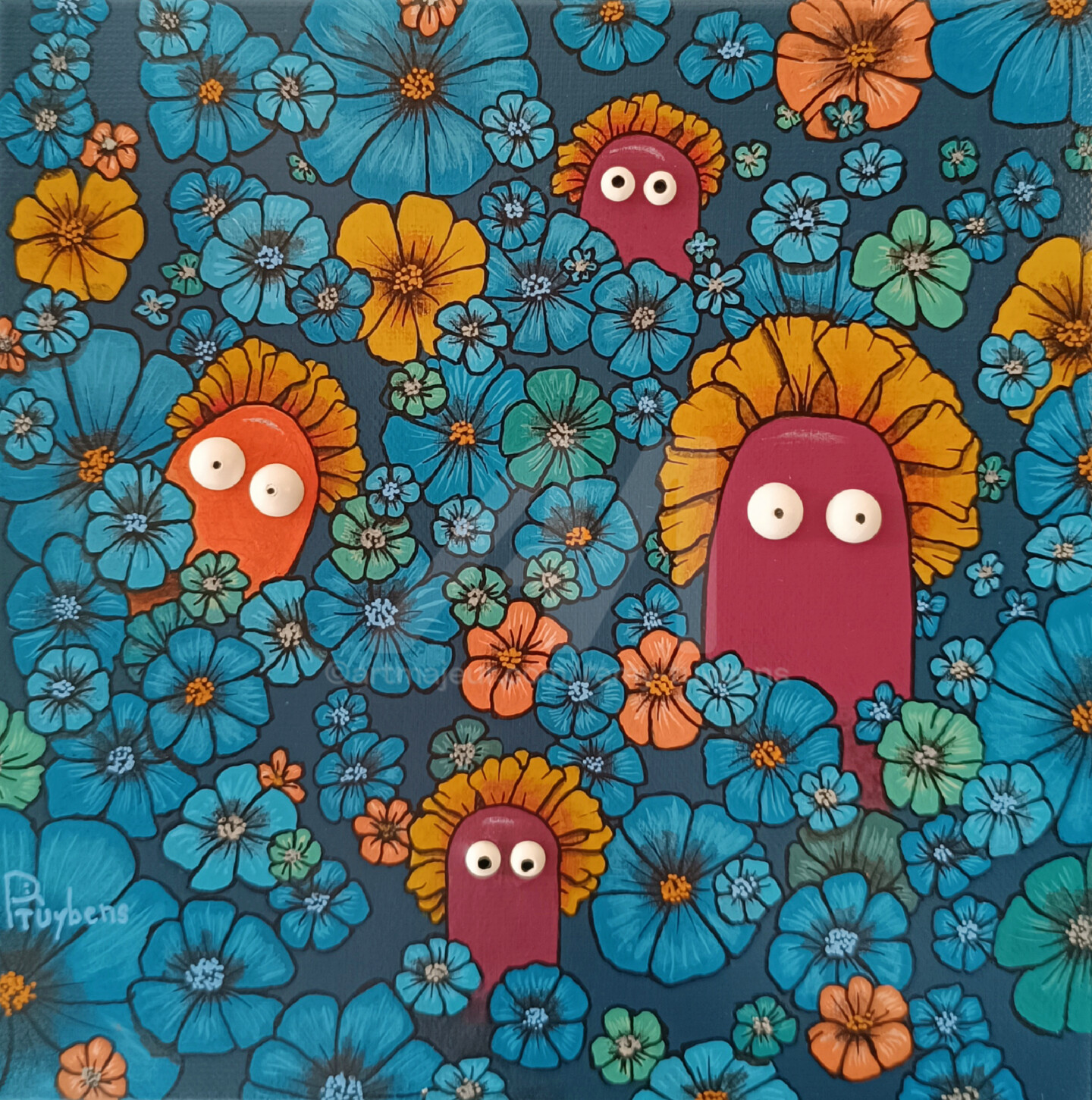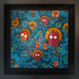 20x20 cm ~ Peinture, Acrylique, Bois, Collages